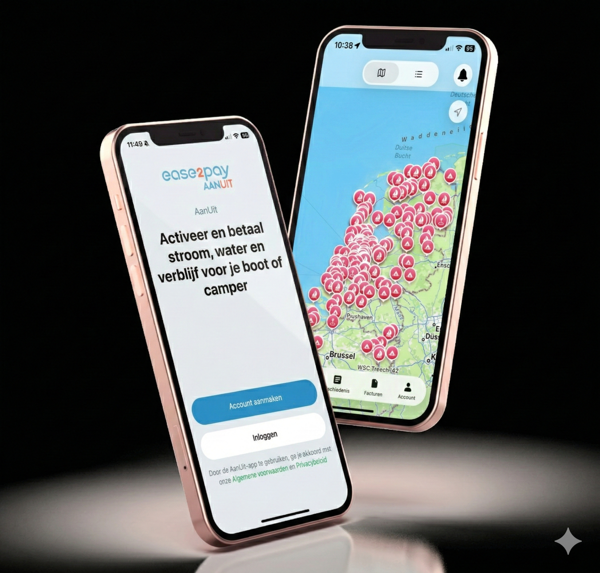 Ease2pay AanUit is beschikbaar in diverse jachthavens een camperplaatsen door heel Nederland. Zet je locatie aan in de app en zie waar het dichtstbijzijnde AanUit-punt is.